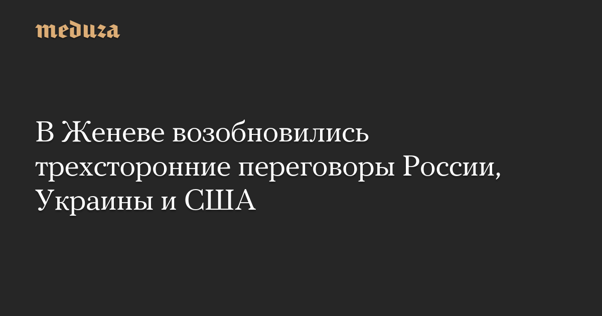 Трехсторонние переговоры с участием делегаций России, Украины и США возобновились в Женеве, сообщили РИА Новости и ТАСС со ссылкой на источник.