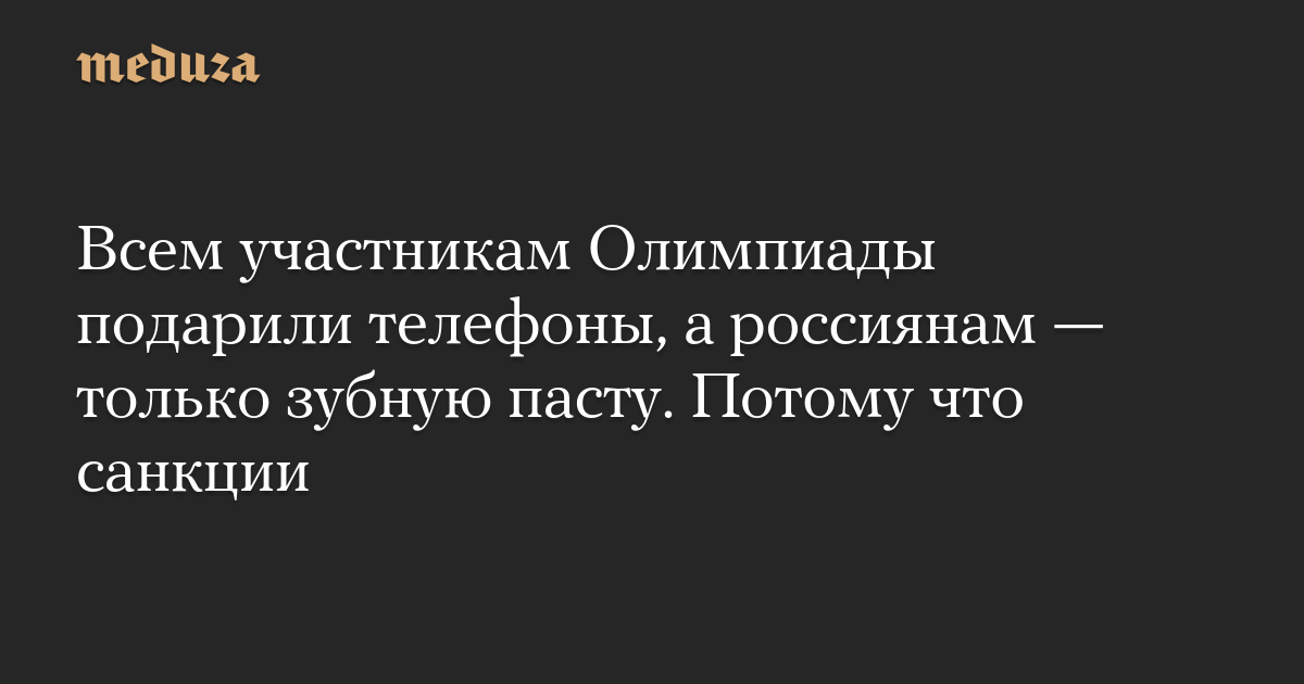 Всем участникам Олимпиады подарили телефоны, а россиянам — только зубную пасту. Потому что санкции