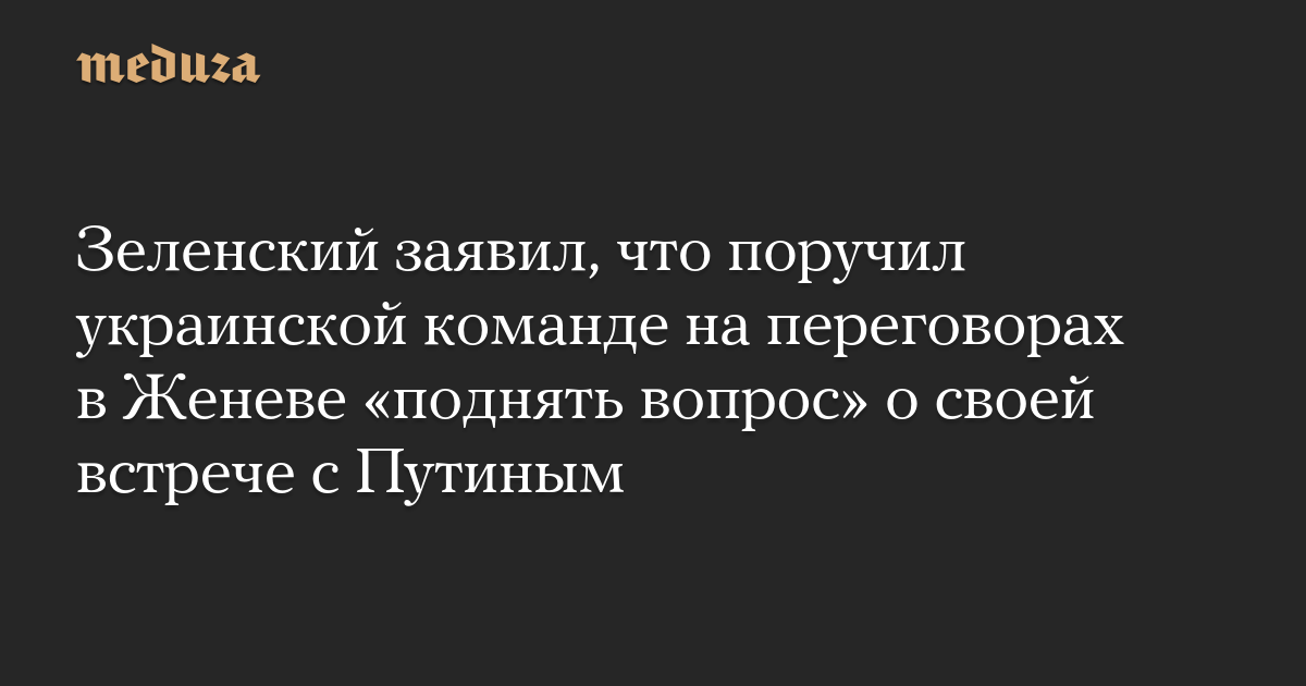 Зеленский заявил, что поручил украинской команде на переговорах в Женеве «поднять вопрос» о своей встрече с Путиным