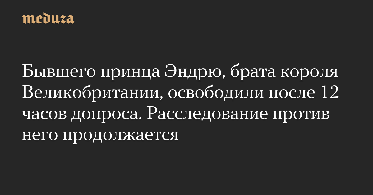 Бывшего принца Эндрю, брата короля Великобритании, освободили после 12 часов допроса. Расследование против него продолжается