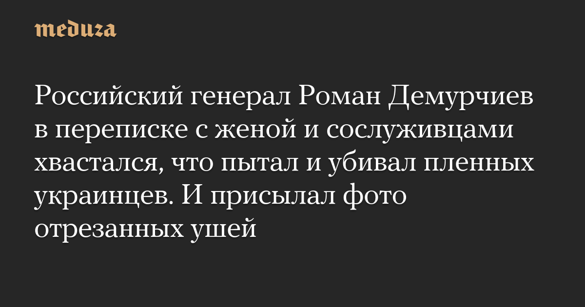 Расследовательские проекты «Схемы» и «Система» получили архив личной переписки российского генерала Романа Демурчиева, который хвастался своим близким и сослуживцам пытками, казнями и надругательствами над телами украинских военных, в том числе попавших в плен.