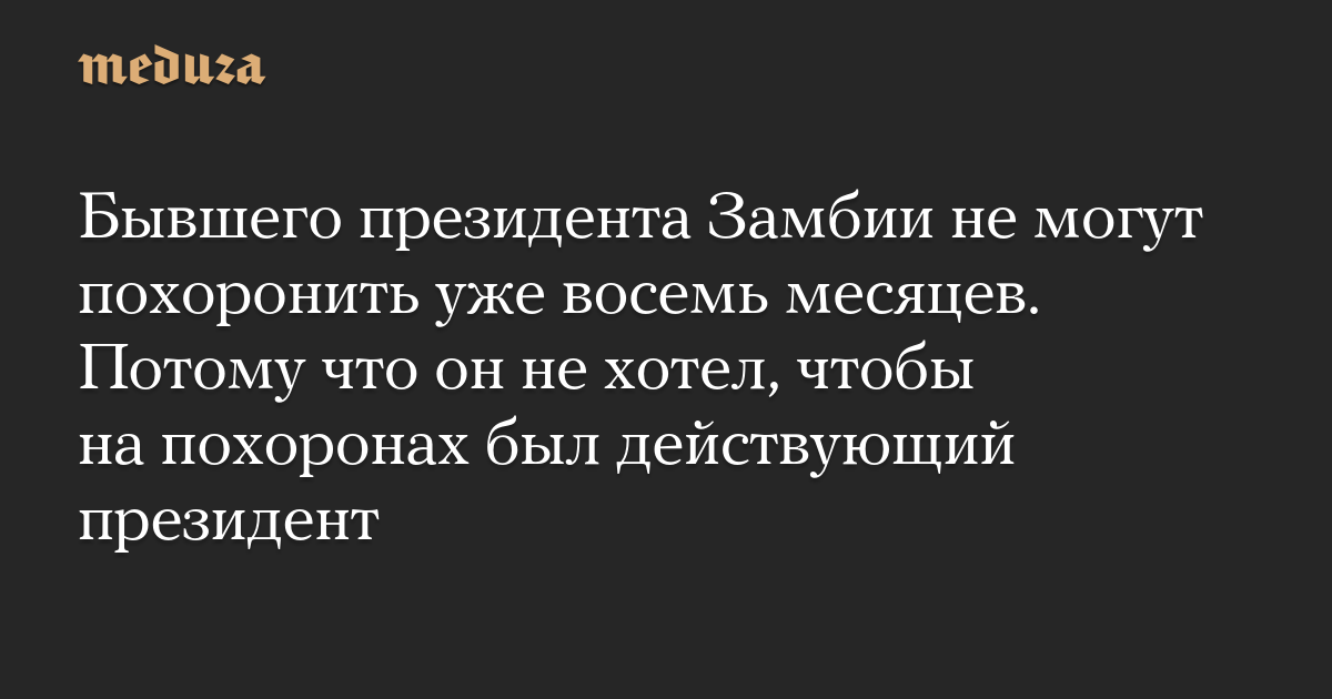 Бывшего президента Замбии не могут похоронить уже восемь месяцев. Потому что он не хотел, чтобы на похоронах был действующий президент