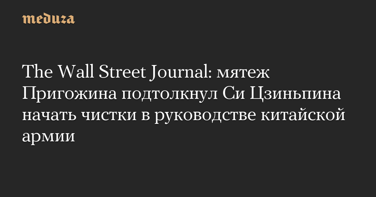 The Wall Street Journal: мятеж Пригожина подтолкнул Си Цзиньпина начать чистки в руководстве китайской армии