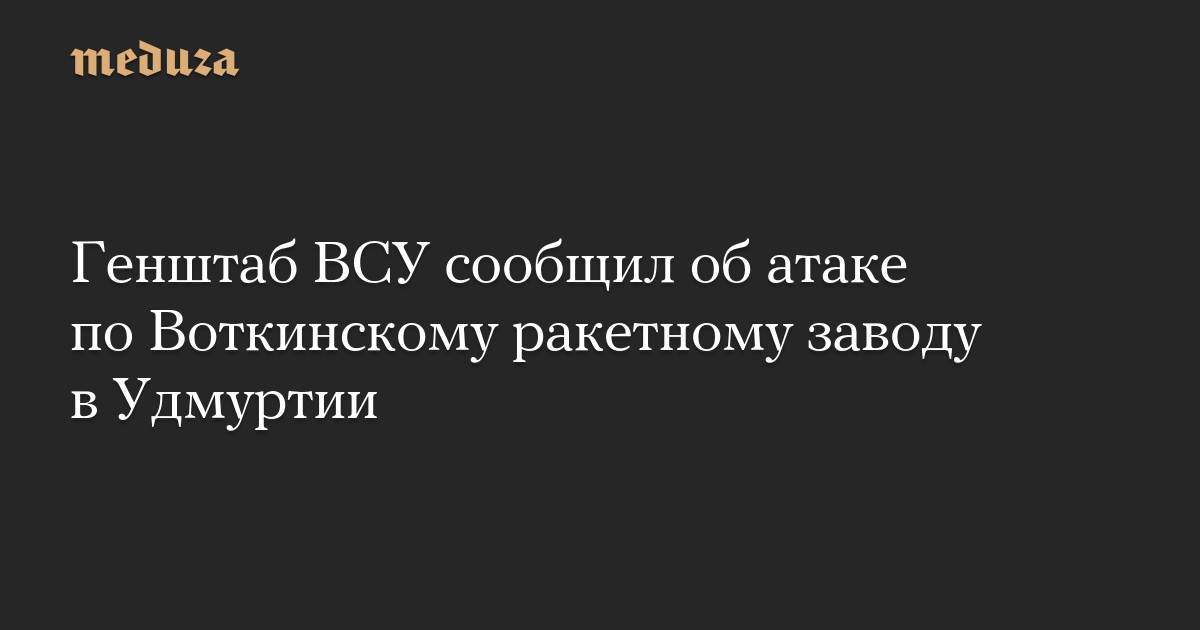 Генштаб ВСУ сообщил об атаке по Воткинскому ракетному заводу в Удмуртии
