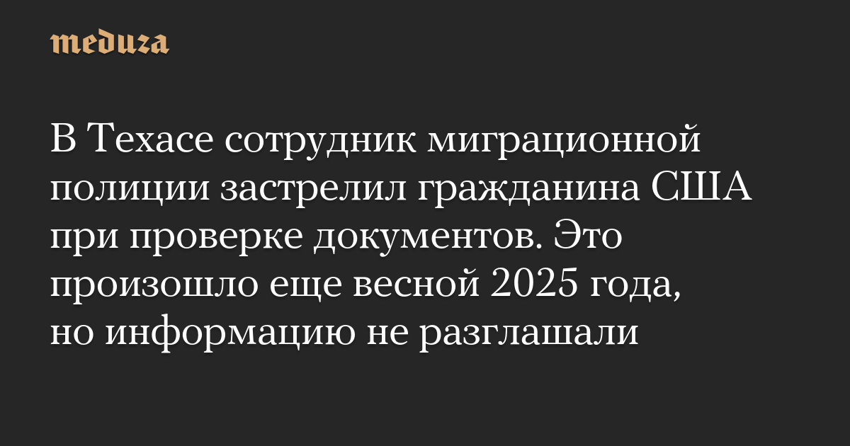 В Техасе сотрудник миграционной полиции застрелил гражданина США при проверке документов. Это произошло еще весной 2025 года, но информацию не разглашали