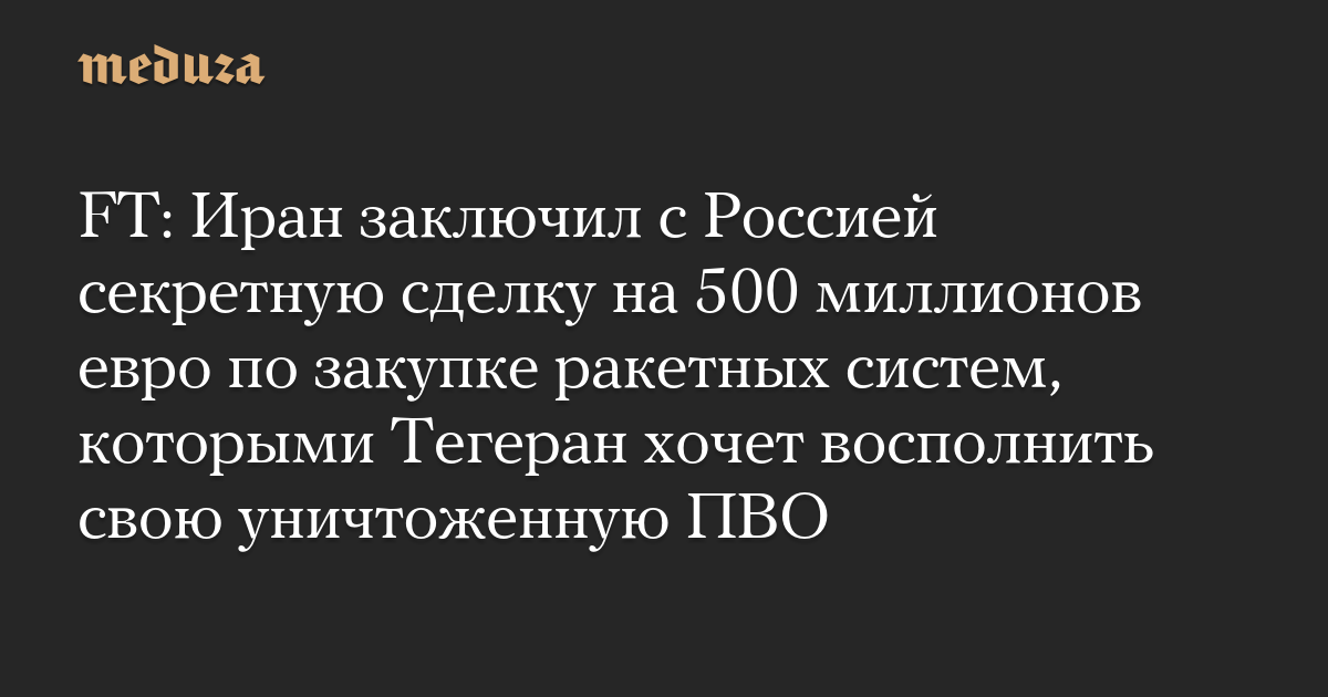 FT: Иран заключил с Россией секретную сделку на 500 миллионов евро по закупке ракетных систем, которыми Тегеран хочет восполнить свою уничтоженную ПВО