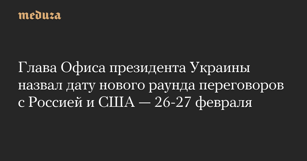 Глава Офиса президента Украины назвал дату нового раунда переговоров с Россией и США — 26-27 февраля