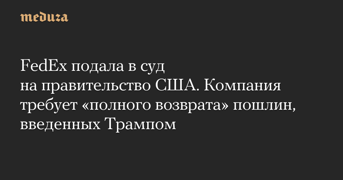 Издание отмечает, что FedEx стала первой крупной американской компанией, которая решила судиться с правительством после того, как Верховный суд США признал пошлины Трампа незаконными.