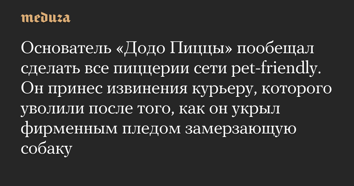 Основатель «Додо Пиццы» пообещал сделать все пиццерии сети pet-friendly. Он принес извинения курьеру, которого уволили после того, как он укрыл фирменным пледом замерзающую собаку