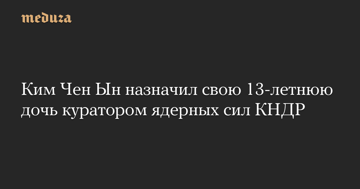 Лидер Северной Кореи Ким Чен Ын поручил своей 13-летней дочери Ким Чжу Э курировать ядерные силы страны. Об этом со ссылкой на южнокорейскую разведку сообщает газета The Chosun Daily.