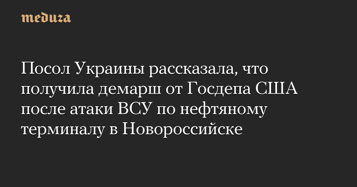Посол Украины рассказала, что получила демарш от Госдепа США после атаки ВСУ по нефтяному терминалу в Новороссийске