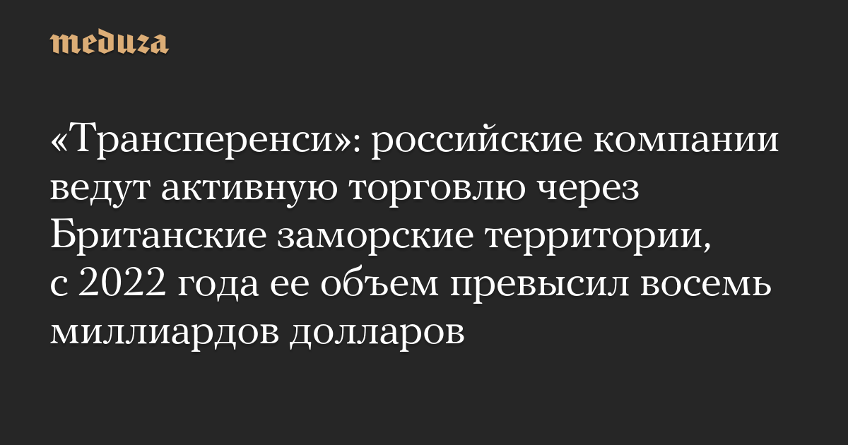 «Трансперенси»: российские компании ведут активную торговлю через Британские заморские территории, с 2022 года ее объем превысил восемь миллиардов долларов