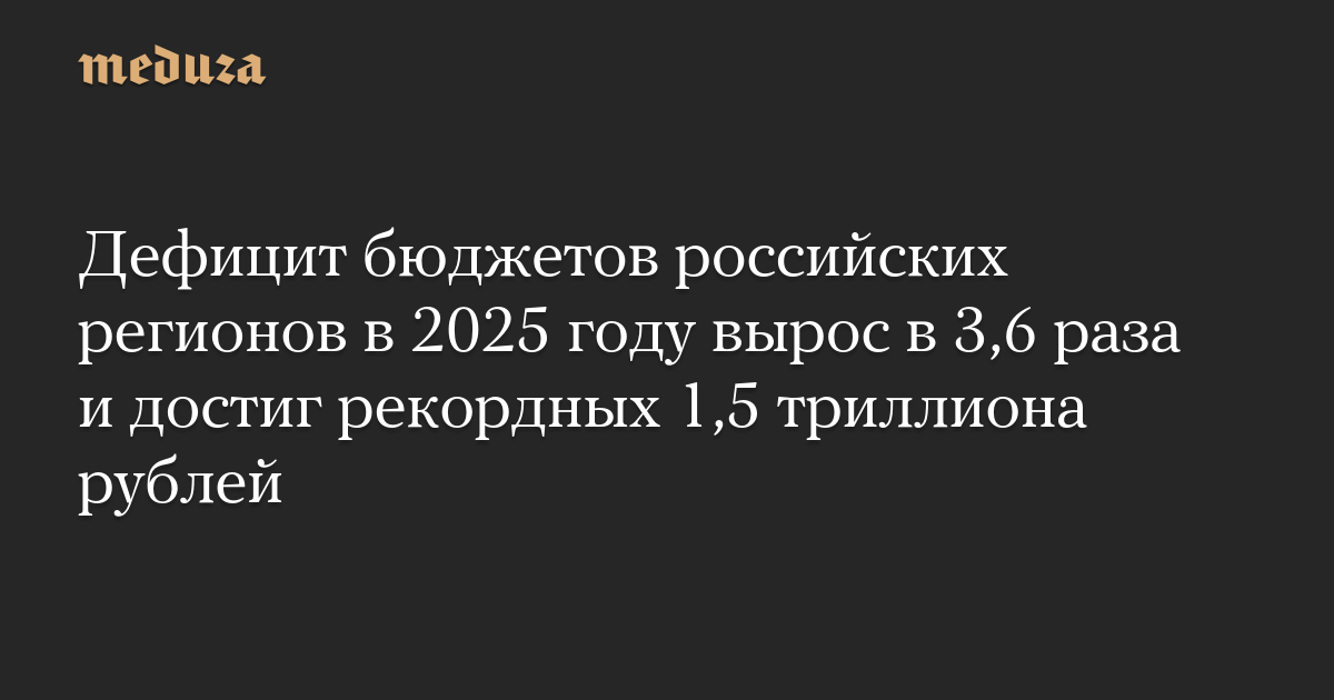 Дефицит бюджетов российских регионов в 2025 году вырос в 3,6 раза и достиг рекордных 1,5 триллиона рублей