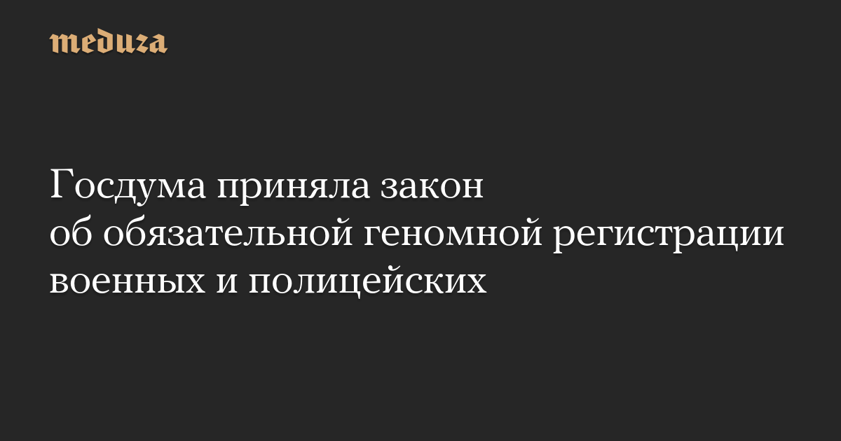 Госдума 26 февраля приняла во втором и третьем, заключительном чтении закон о введении обязательной государственной геномной регистрации для определенных категорий военных и сотрудников органов внутренних дел.