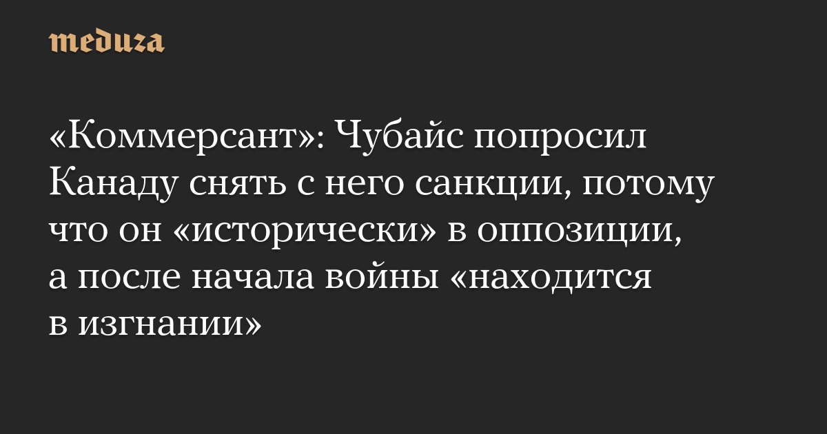 «Коммерсант»: Чубайс попросил Канаду снять с него санкции, потому что он «исторически» в оппозиции, а после начала войны «находится в изгнании»