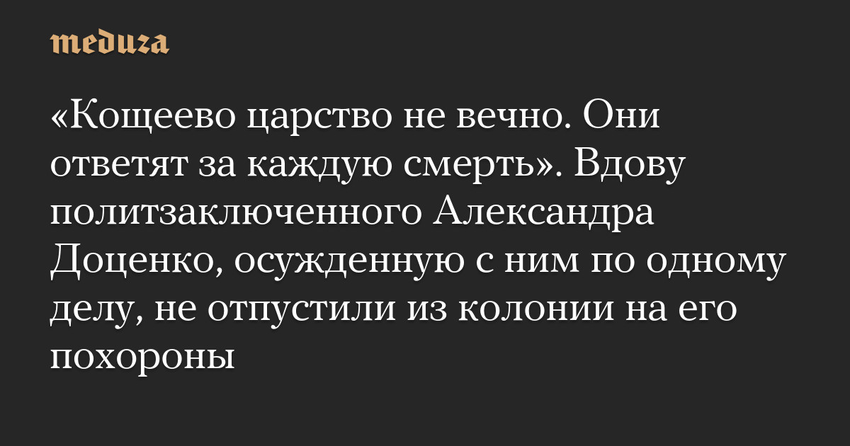 «Кощеево царство не вечно. Они ответят за каждую смерть». Вдову политзаключенного Александра Доценко, осужденную с ним по одному делу, не отпустили из колонии на его похороны