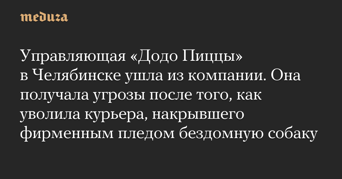 Управляющая «Додо Пиццы» в Челябинске ушла из компании. Она получала угрозы после того, как уволила курьера, накрывшего фирменным пледом бездомную собаку