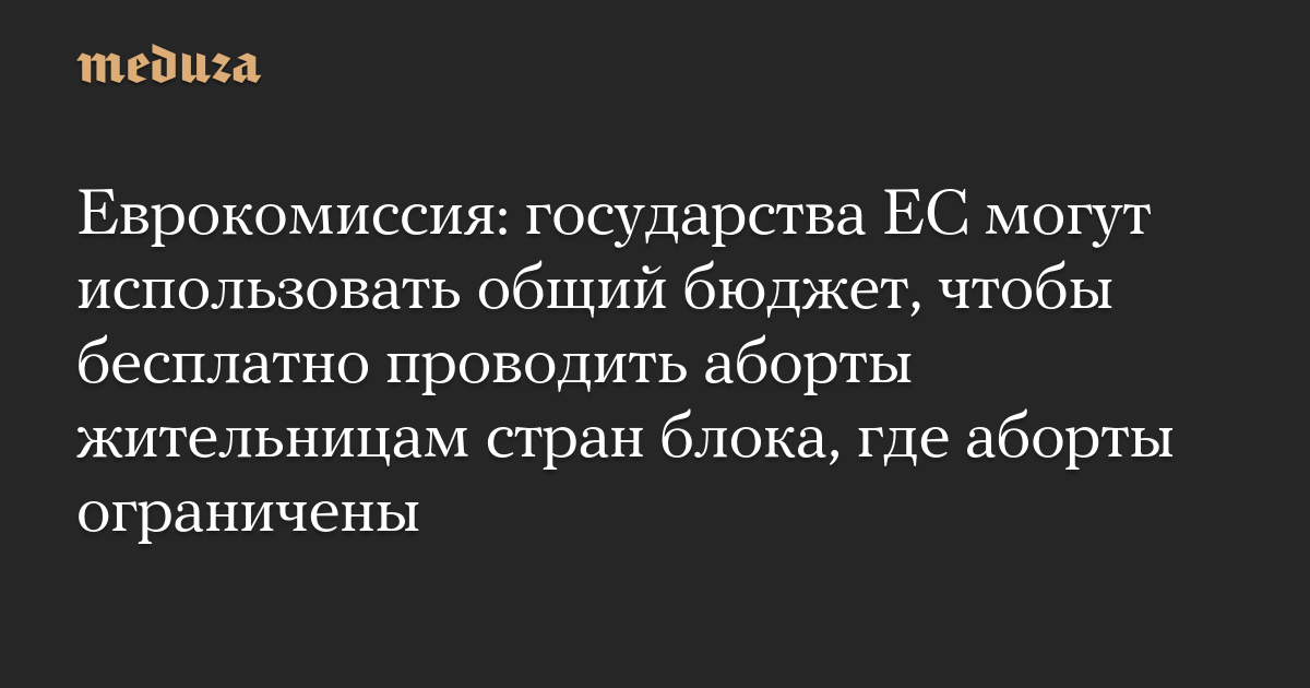 Еврокомиссия: государства ЕС могут использовать общий бюджет, чтобы бесплатно проводить аборты жительницам стран блока, где аборты ограничены