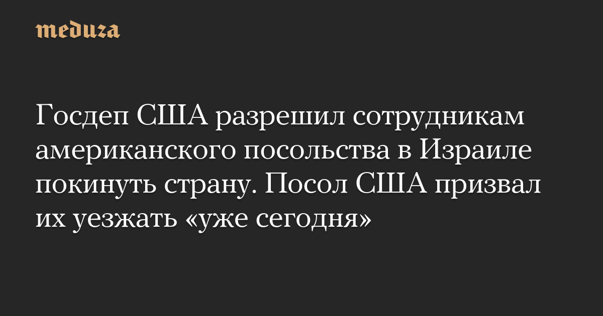 Госдеп США разрешил сотрудникам американского посольства в Израиле покинуть страну. Посол США призвал их уезжать «уже сегодня»
