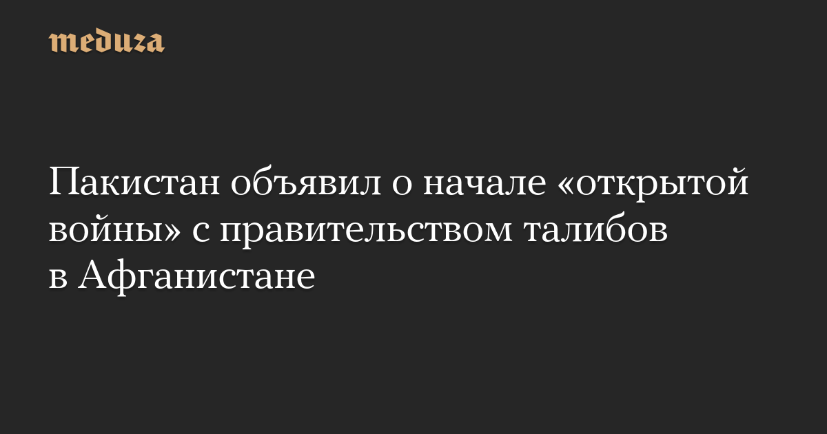 Министр обороны Пакистана Хаваджа Асиф заявил о начале «открытой войны» с движением «Талибан», которое находится у власти в Афганистане. Об этом он написал в соцсети X.