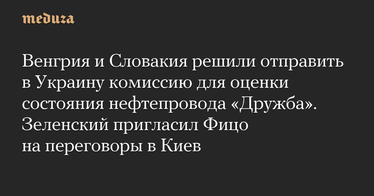 Венгрия и Словакия решили отправить в Украину комиссию для оценки состояния нефтепровода «Дружба». Зеленский пригласил Фицо на переговоры в Киев