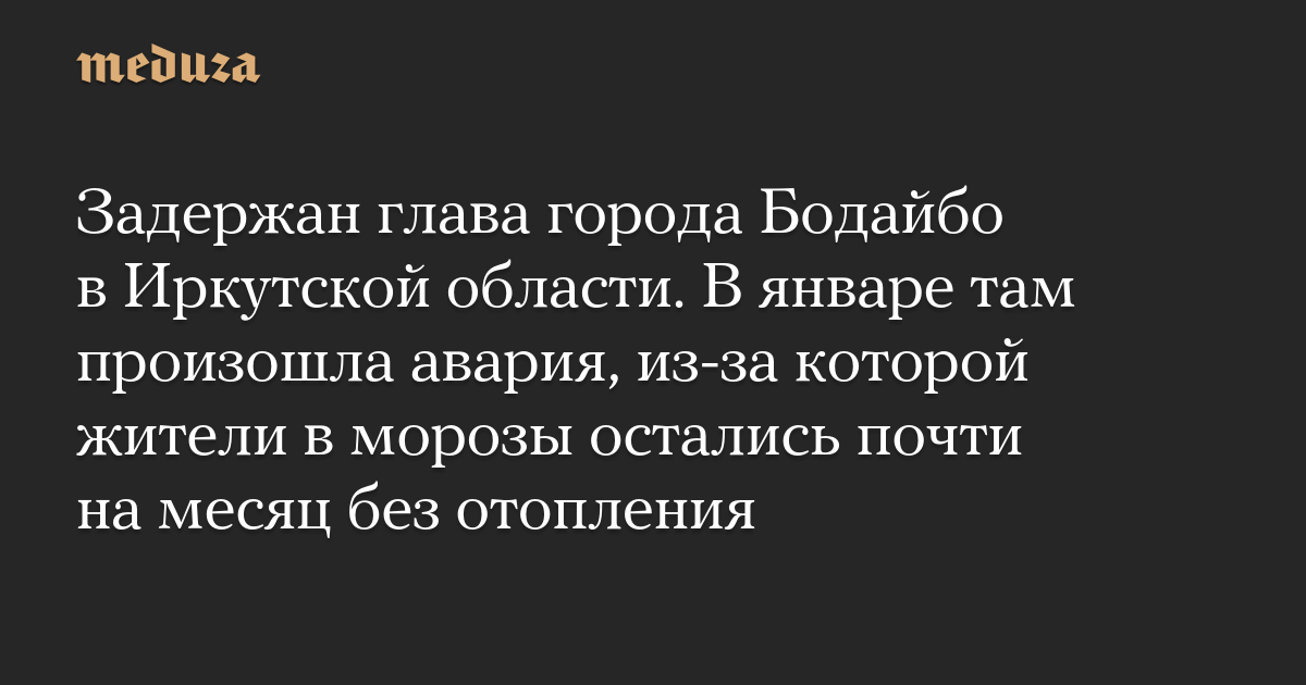 Задержан глава города Бодайбо в Иркутской области. В январе там произошла авария, из-за которой жители в морозы остались почти на месяц без отопления