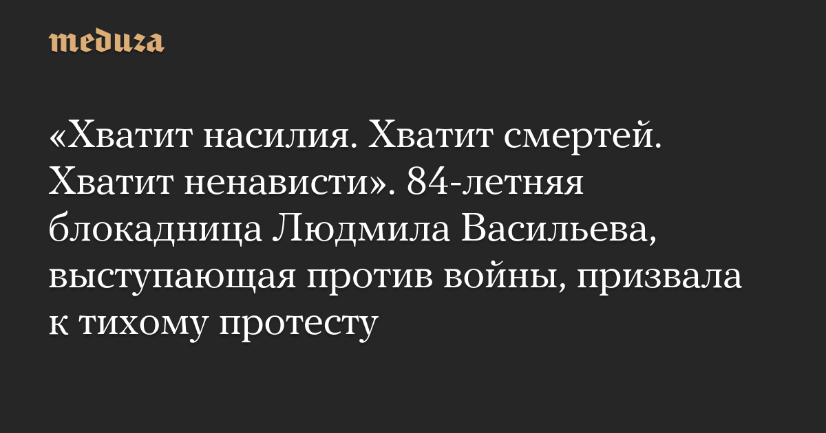 84-летняя жительница Петербурга Людмила Васильева, пережившая блокаду Ленинграда, записала видеообращение, в котором призвала к тихому протесту. Запись появилась в телеграм-канале «Полдень за мир» 1 марта.