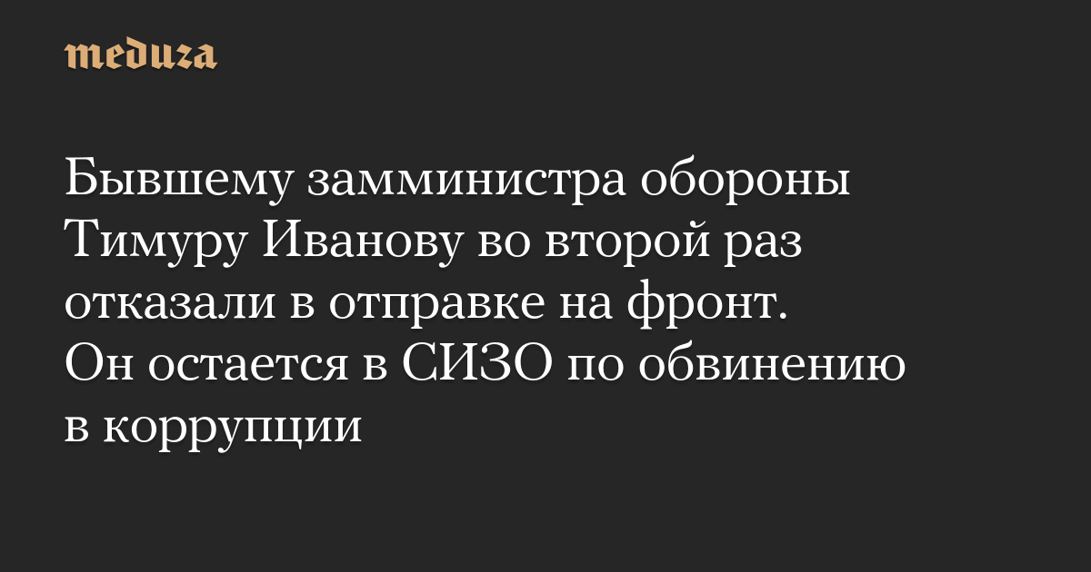 Бывшему замминистра обороны Тимуру Иванову во второй раз отказали в отправке на фронт. Он остается в СИЗО по обвинению в коррупции