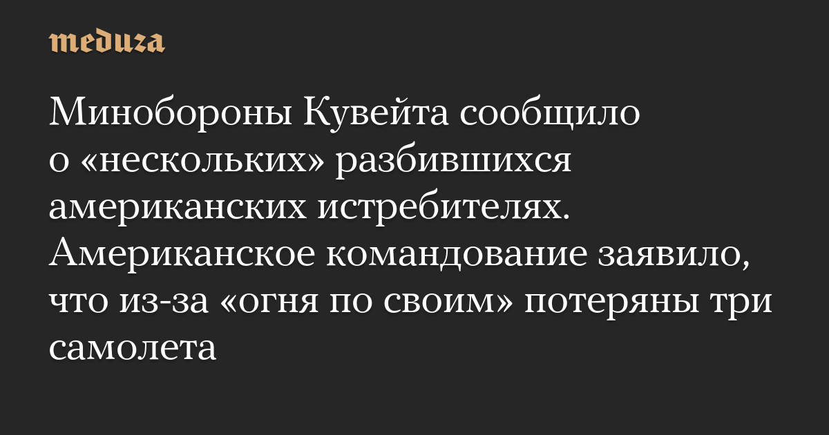 Минобороны Кувейта сообщило о «нескольких» разбившихся американских истребителях. Американское командование заявило, что из-за «огня по своим» потеряны три самолета