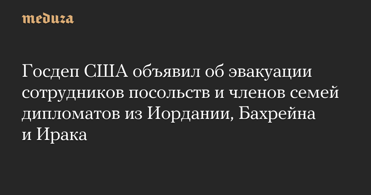 Госдепартамент США объявил, что Иорданию, Бахрейн и Ирак покидают вспомогательный персонал американских посольств и члены семей дипломатов.