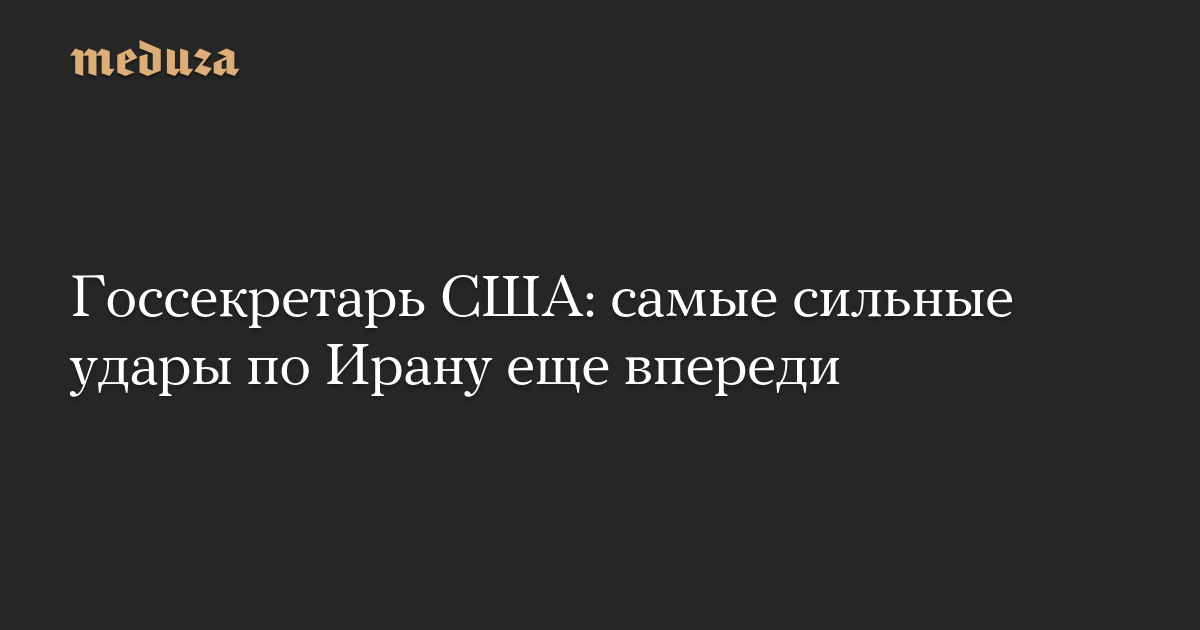 Госсекретарь США Марко Рубио заявил, что самые сильные удары по Ирану со стороны американских военных еще только предстоят. Его слова приводят BBC News и The New York Times.