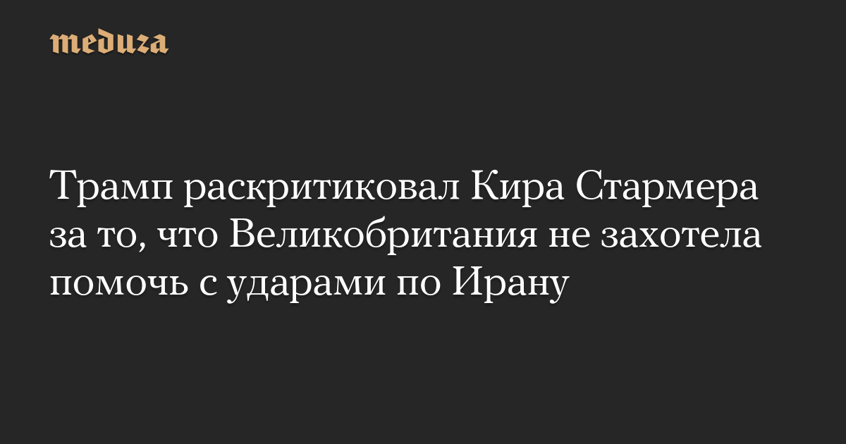 Трамп раскритиковал Кира Стармера за то, что Великобритания не захотела помочь с ударами по Ирану