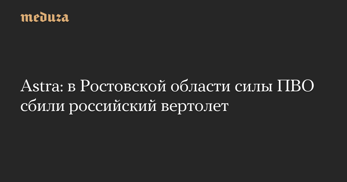 Astra: в Ростовской области силы ПВО сбили российский вертолет