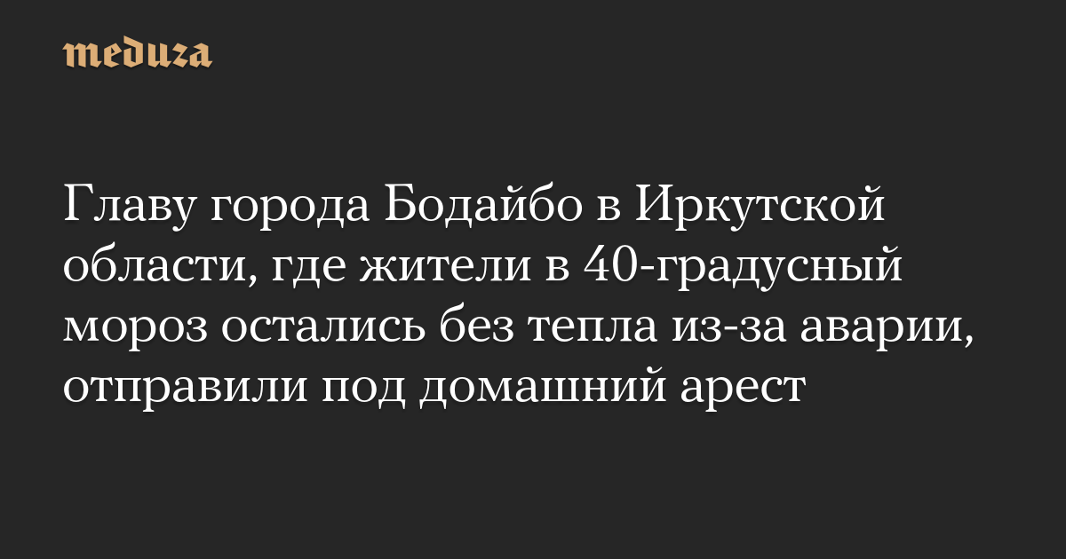 Главу города Бодайбо в Иркутской области, где жители в 40-градусный мороз остались без тепла из-за аварии, отправили под домашний арест