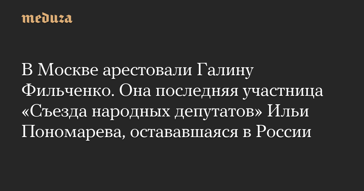 В Москве арестовали Галину Фильченко. Она последняя участница «Съезда народных депутатов» Ильи Пономарева, остававшаяся в России