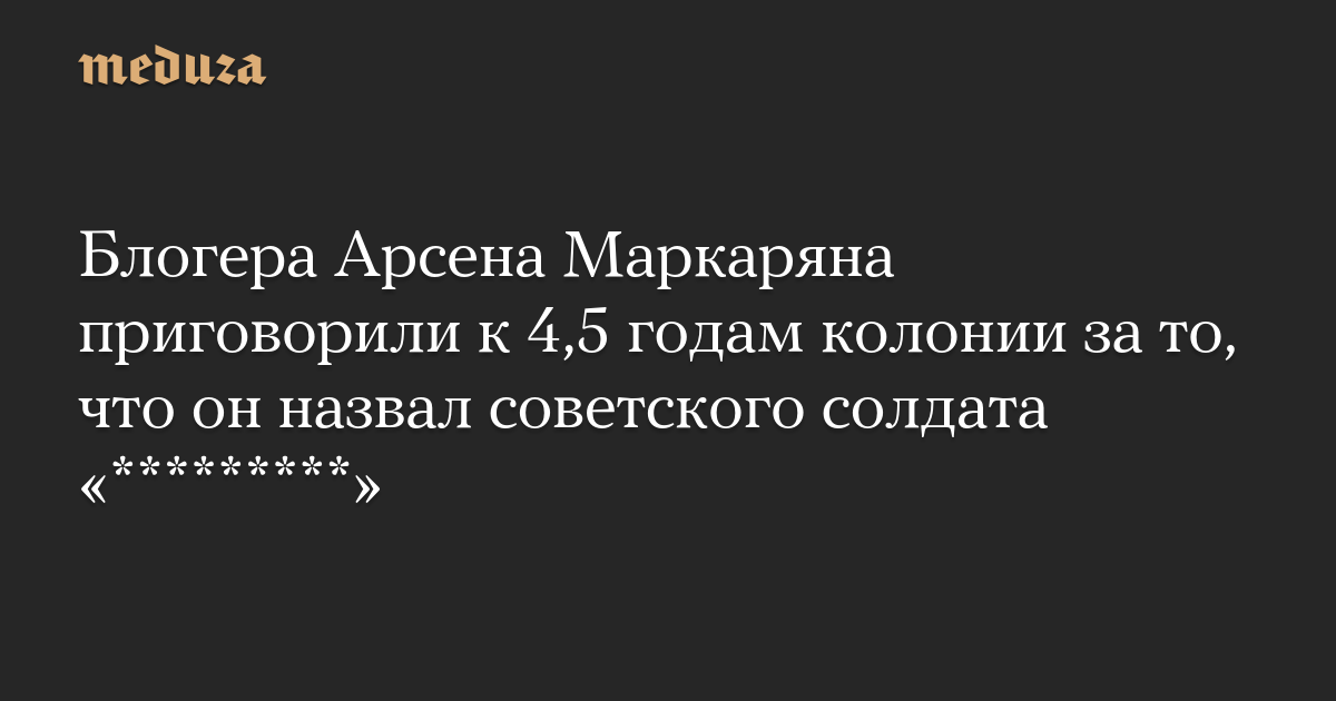 Блогера Арсена Маркаряна приговорили к 4,5 годам колонии за то, что он назвал советского солдата «*********»