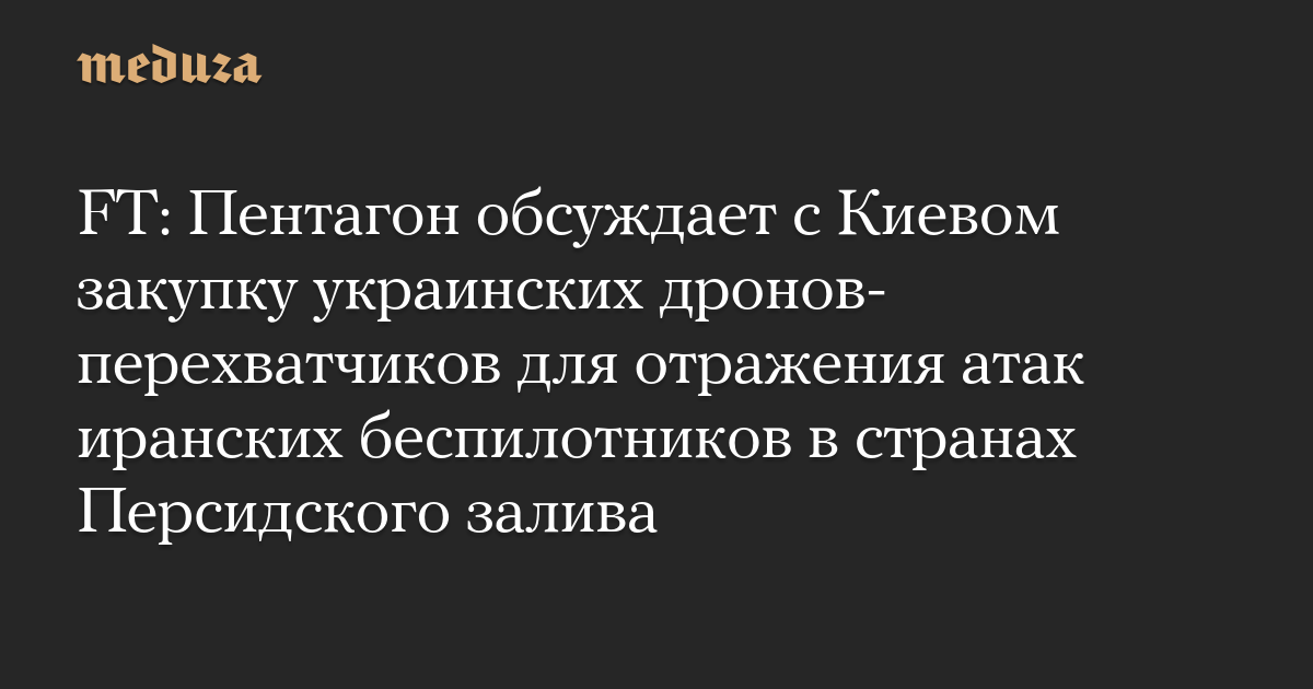 FT: Пентагон обсуждает с Киевом закупку украинских дронов-перехватчиков для отражения атак иранских беспилотников в странах Персидского залива