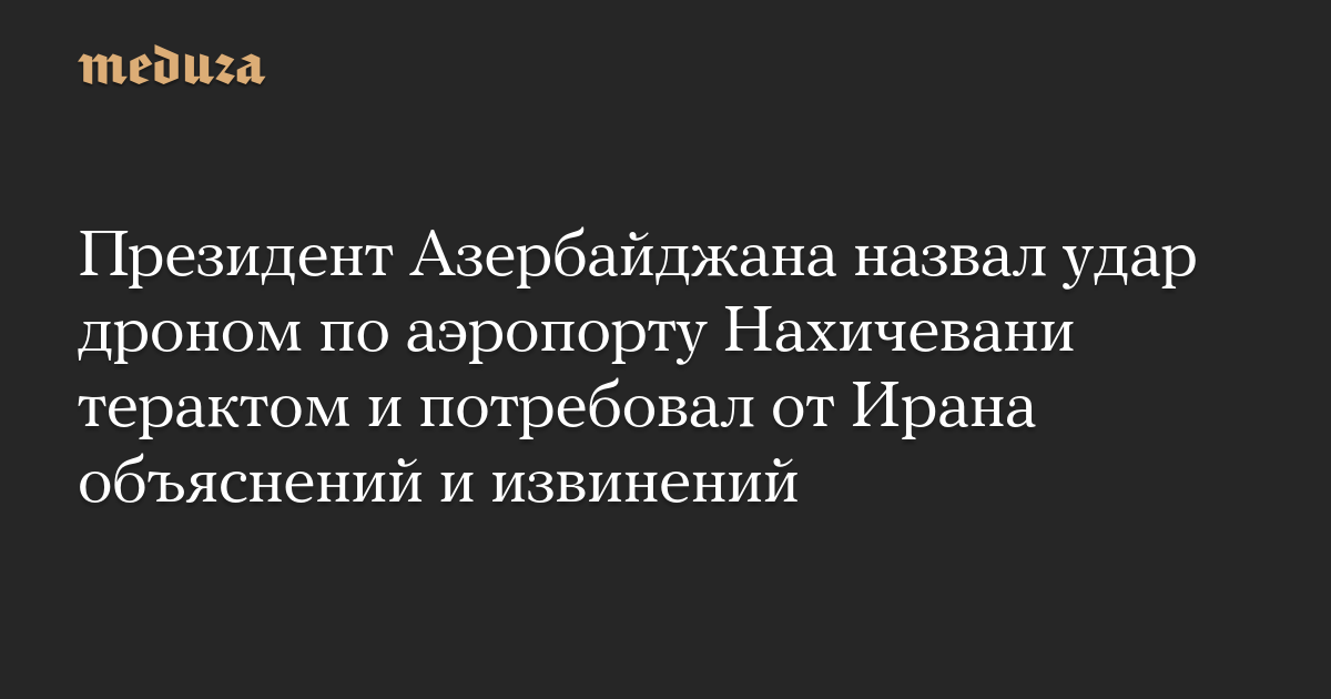 Президент Азербайджана назвал удар дроном по аэропорту Нахичевани терактом и потребовал от Ирана объяснений и извинений
