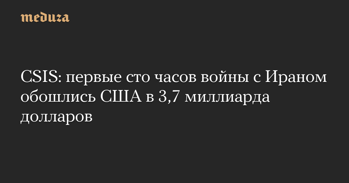 CSIS: первые сто часов войны с Ираном обошлись США в 3,7 миллиарда долларов