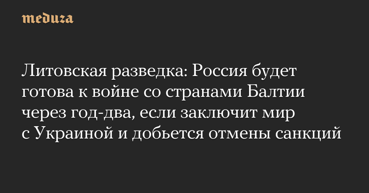 Литовская разведка: Россия будет готова к войне со странами Балтии через год-два, если заключит мир с Украиной и добьется отмены санкций