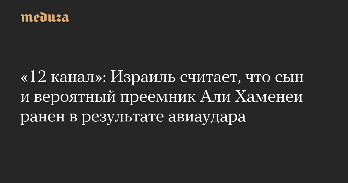 «12 канал»: Израиль считает, что сын и вероятный преемник Али Хаменеи ранен в результате авиаудара