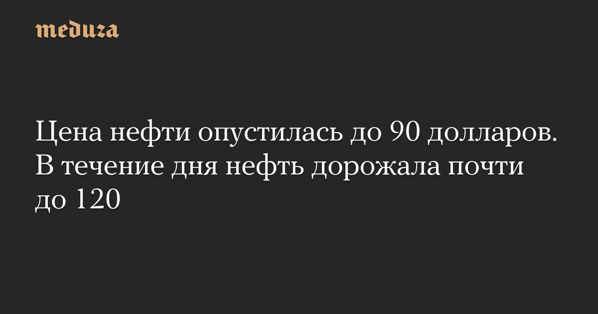 Цена нефти опустилась до 90 долларов. В течение дня нефть дорожала почти до 120