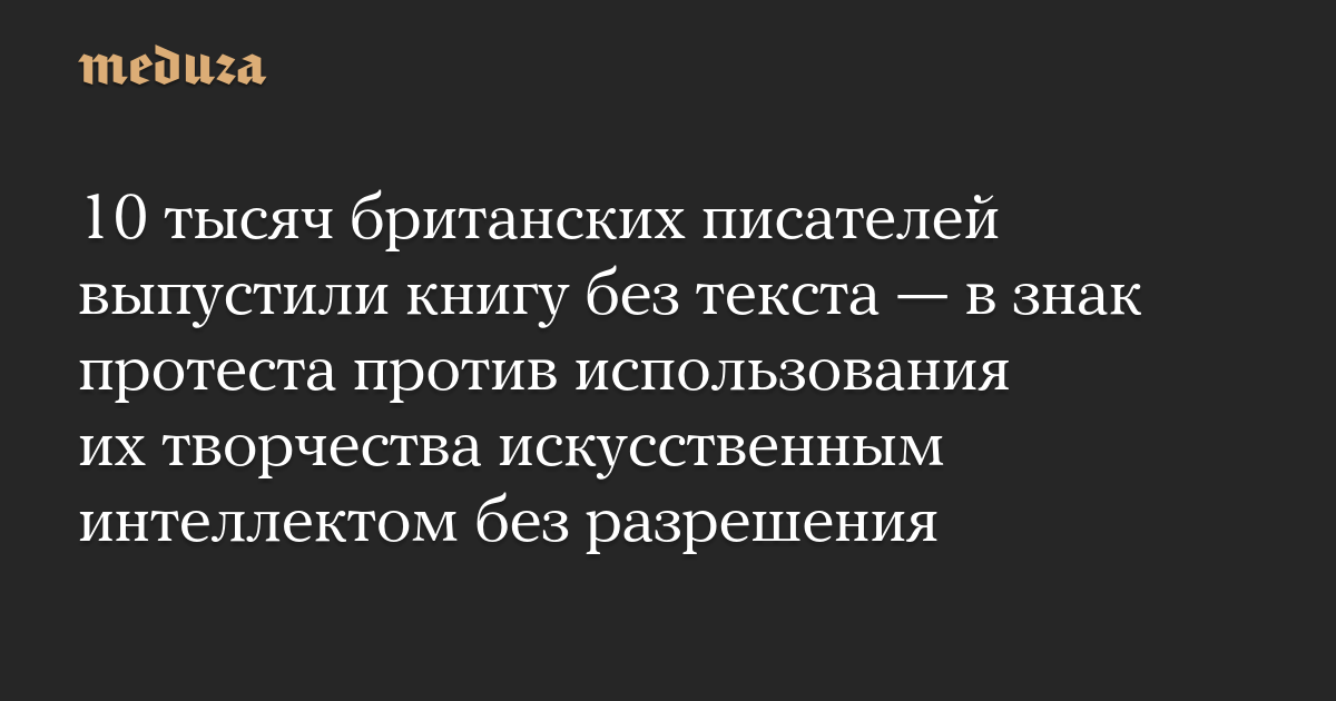 В Великобритании более 10 тысяч писателей выпустили «пустую» книгу — в знак протеста против использования без разрешения их работ компаниями, занимающимися искусственным интеллектом. Об этом пишет The Guardian.