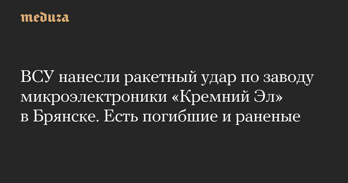 ВСУ нанесли ракетный удар по заводу микроэлектроники «Кремний Эл» в Брянске. Есть погибшие и раненые