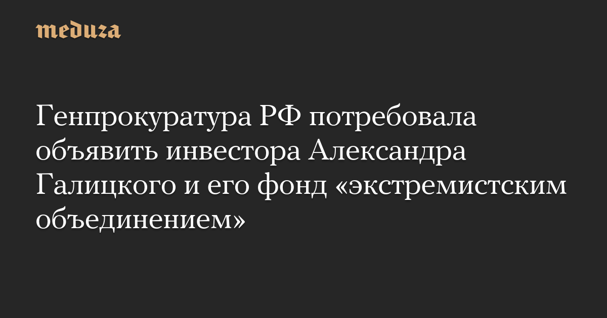 Генпрокуратура РФ потребовала объявить инвестора Александра Галицкого и его фонд «экстремистским объединением»
