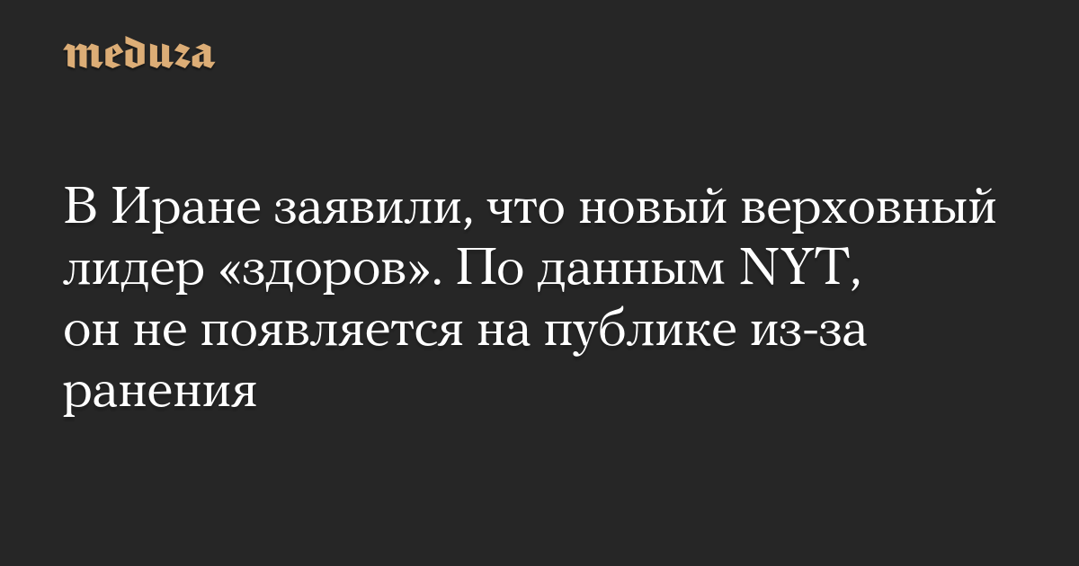 В Иране заявили, что новый верховный лидер «здоров». По данным NYT, он не появляется на публике из-за ранения