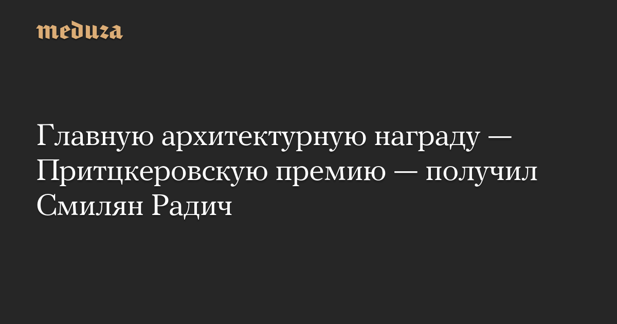 Главную архитектурную награду — Притцкеровскую премию — получил Смилян Радич