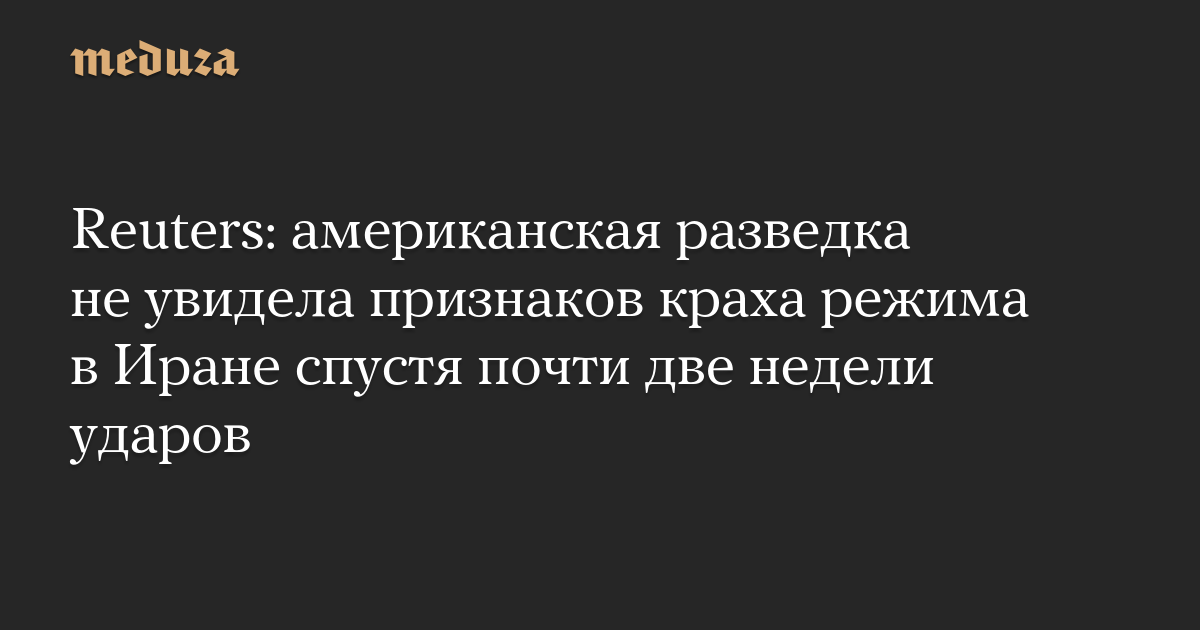 Reuters: американская разведка не увидела признаков краха режима в Иране спустя почти две недели ударов