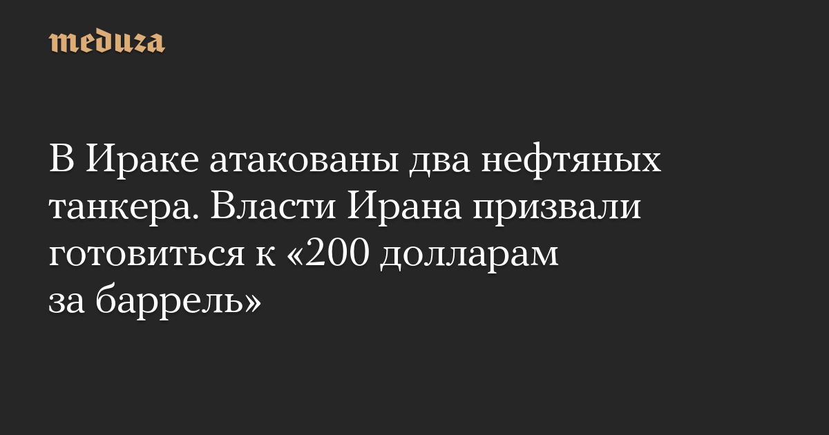 В Ираке атакованы два нефтяных танкера. Власти Ирана призвали готовиться к «200 долларам за баррель»