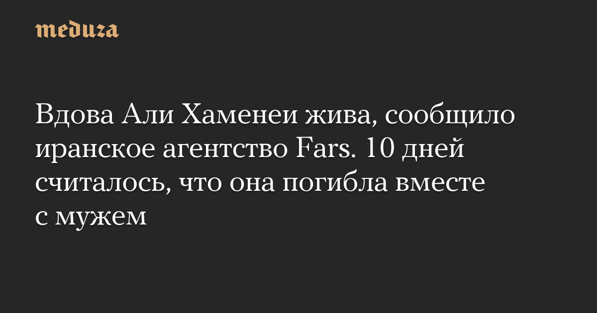 Вдова Али Хаменеи жива, сообщило иранское агентство Fars. 10 дней считалось, что она погибла вместе с мужем